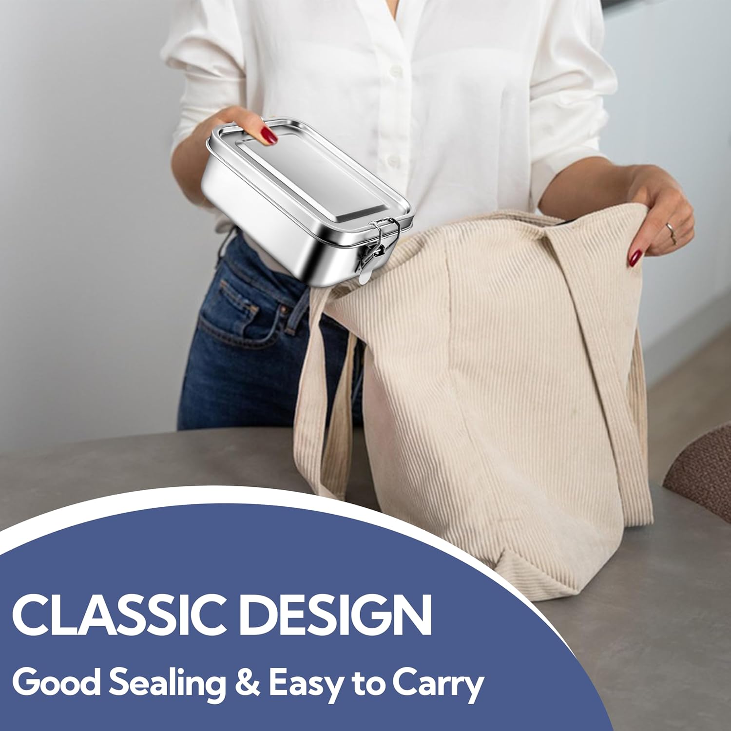 Material: Food-grade stainless steel with leakproof silicone gasket and snap latches